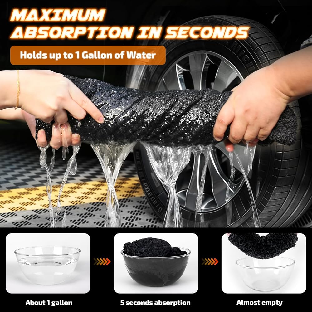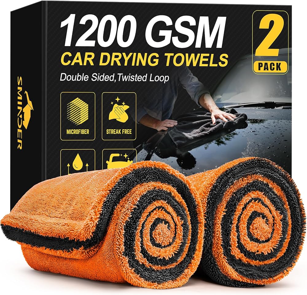 Streak-Free, Spot-Free Drying: With SMINDER's advanced 1200 GSM microfiber and twisted-loop technology, you'll enjoy a flawless finish every time. Just one pass and your car is 100% dry, streak-free, and water spot-free. The towels absorb up to an entire gallon of water, making them perfect for efficient, high-performance drying.