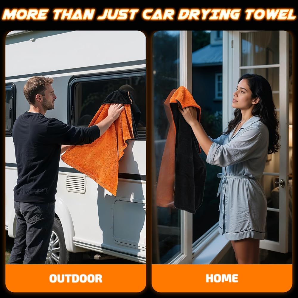 Versatile for Multiple Uses: Measuring 36” x 24” each, these towels are not only ideal for car drying but also perfect for household cleaning, outdoor activities, or any situation where a highly absorbent, soft towel is needed. Versatile and large enough for various uses, they make an essential addition to any cleaning routine.