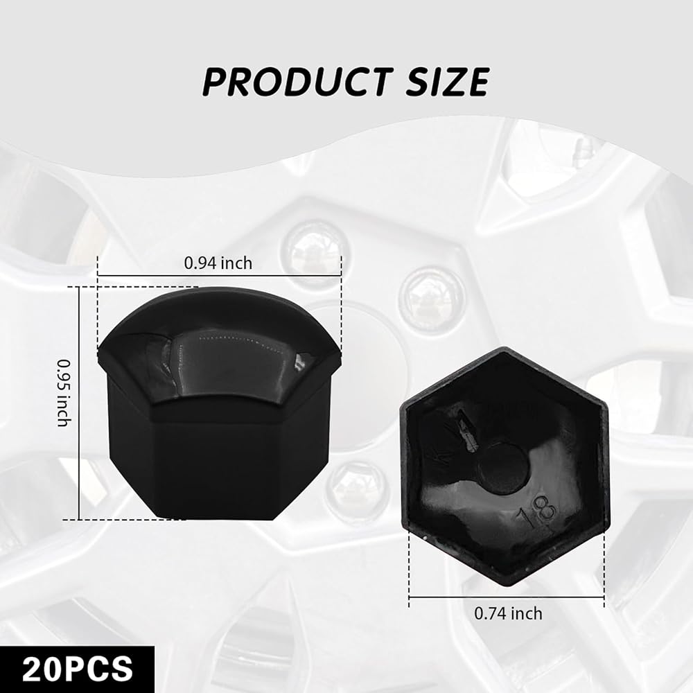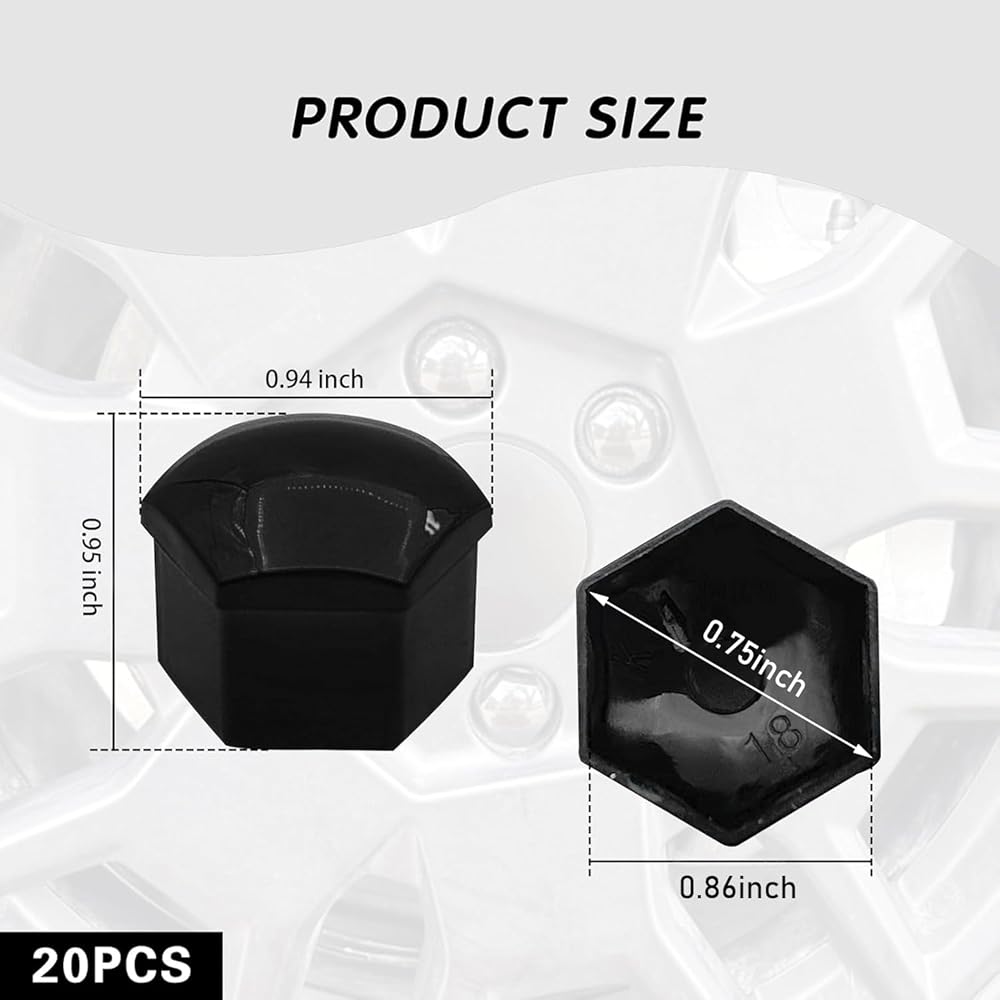 20PCS Lug Nut Covers, 19mm Hexagonal Nut Covers with Removal Tool, Car Wheel Nut Caps, Wheel Center Bolt Caps, Universal for Most Car Lug Nut Caps, Automotive Exterior Accessories (Black)