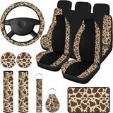 Comprehensive Interior Car Accessories: the cow print car accessories set includes 1 piece of steering wheel cover, 5 sets of seat covers, 2 pieces of car pads, 2 pieces of seat belt pads, 1 piece of wrist strap, 1 piece of cow print keychain and 1 piece of armrest pad cover, which are abundant enough to satisfy your using demands in daily life