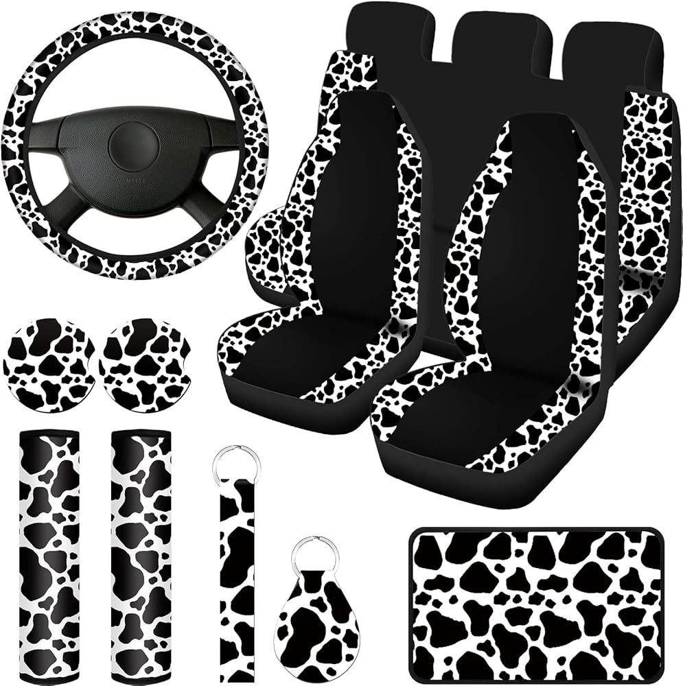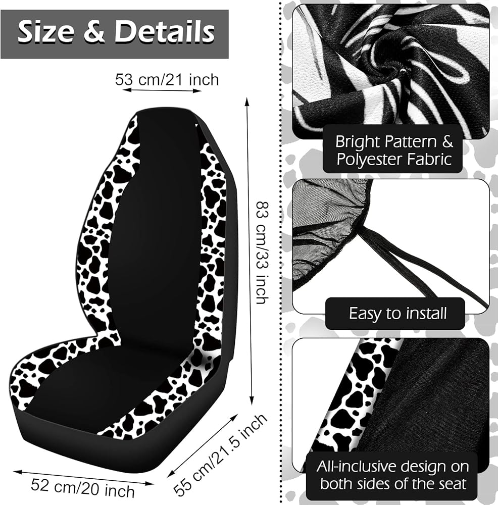 Lovely Cow Craftsmanship: our cow print car seat covers full set adopts exquisite cow print design style, simple yet elegant, lovely and lively, which can match the interior environment of most cars and appeals to the taste of many men and women; These accessories can not only decorate your car, but also prevent your car from dust, tear, water, stains and more