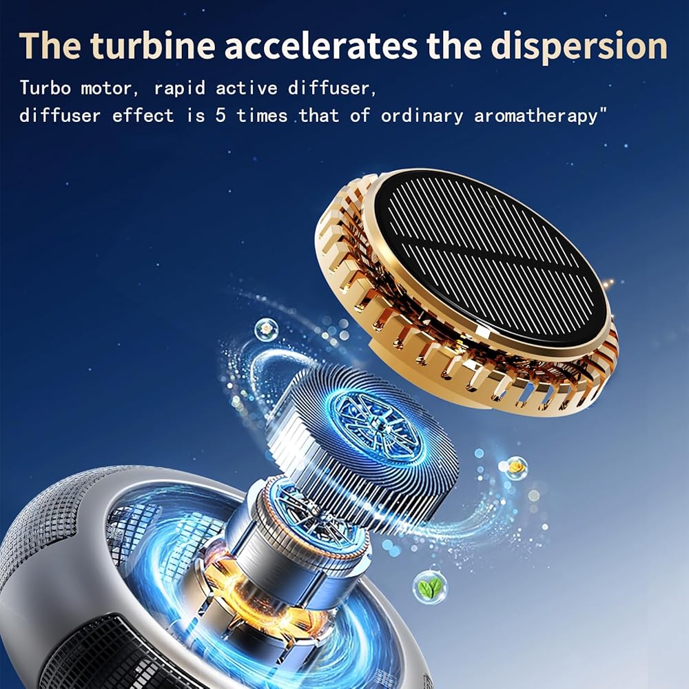 Smart Car Air Freshener Diffuser,Solar Powered Rotating Aroma Diffuser For Vehicle,Car Accessories,Automotive Aromatherapy Ornament (Black&Golden, Ocean)