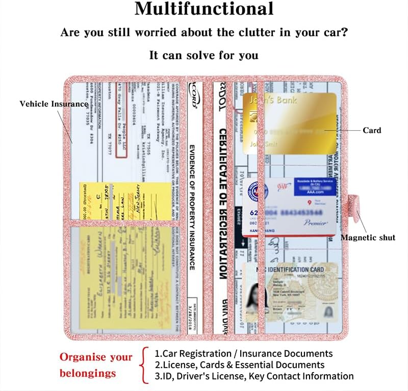 【Secure and Protective】This practical wallet case is perfect to maintain your car paperwork secured and protected. With 6 clear sleeves for your gas card, car registration and insurance informations in the holder to make it secure and safety.