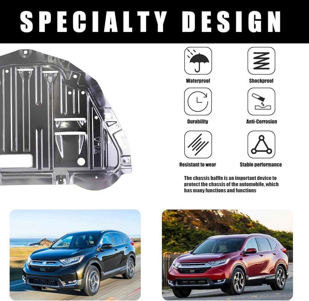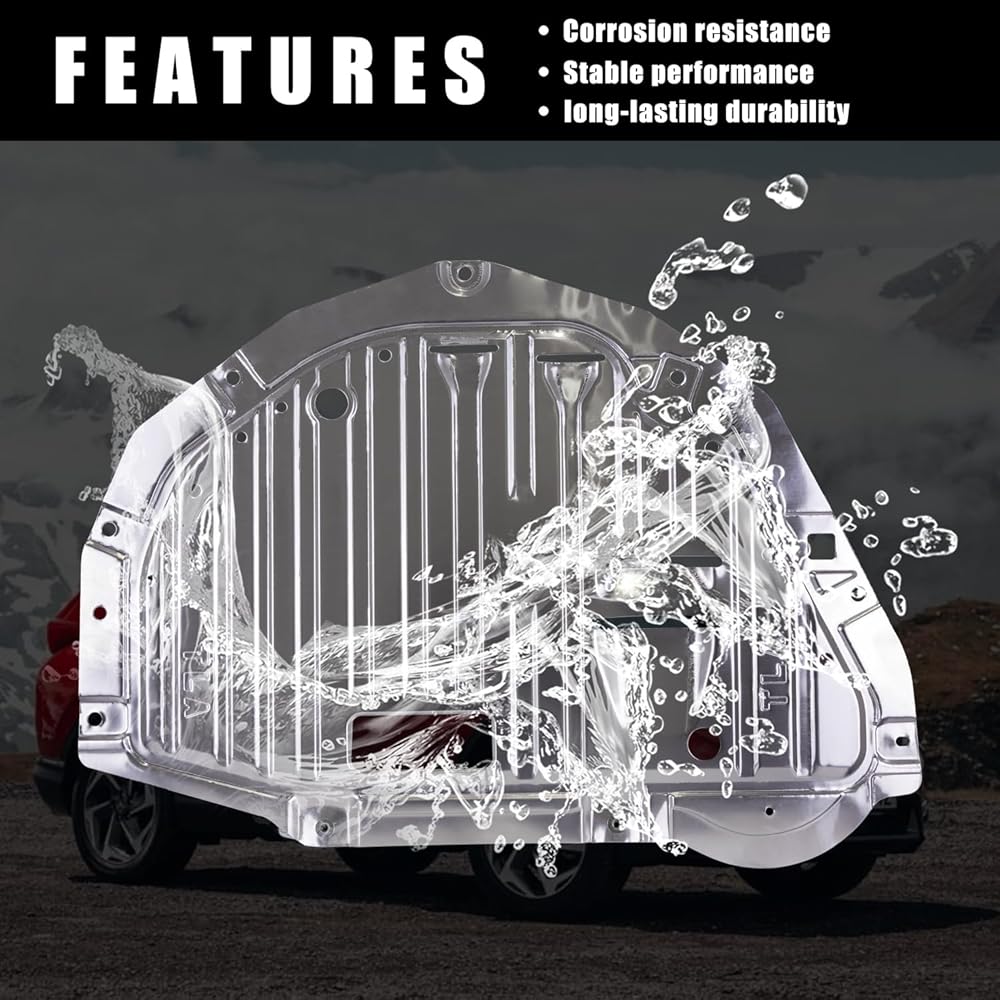 Protects the engine from splashing and collisions with road debris, gravel, and other objects during driving