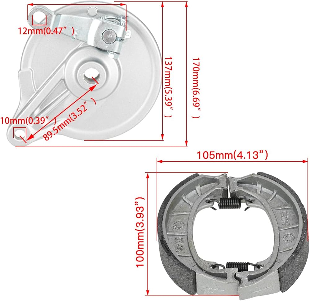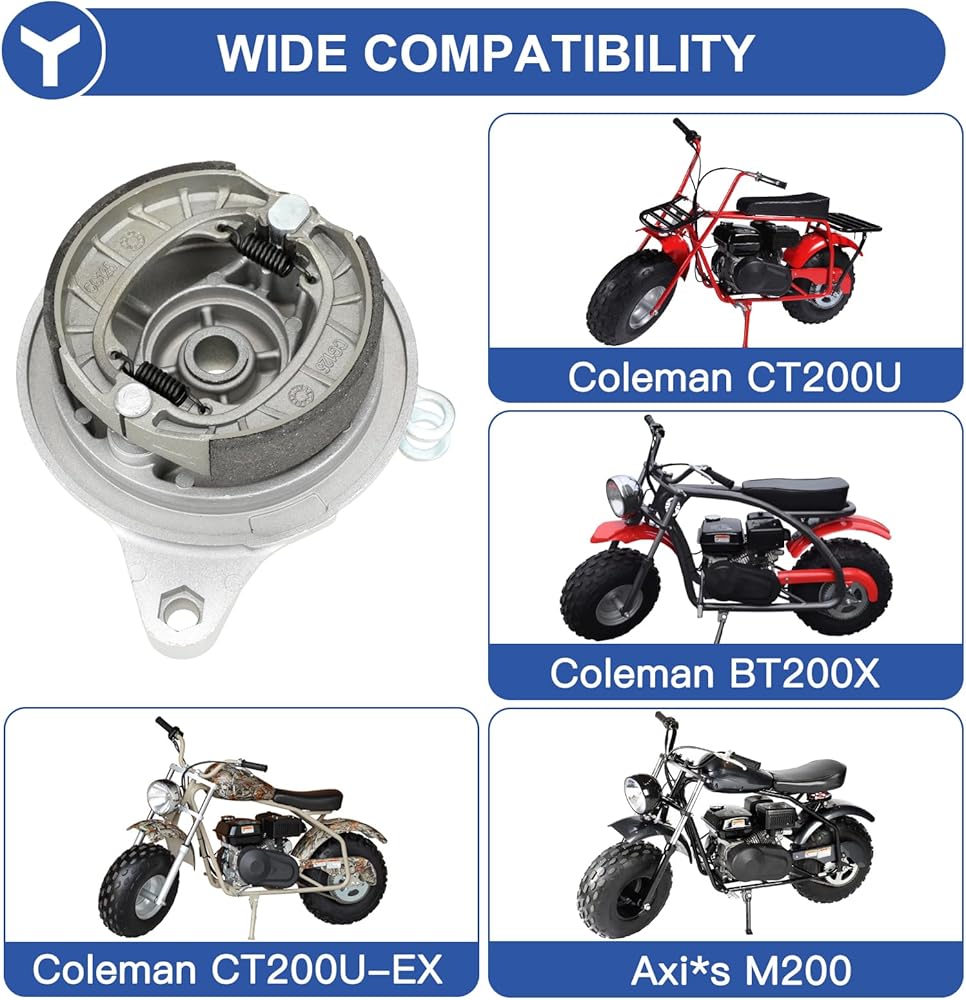 Fitment: Come with mini bike drum brake cover and CG125 105mm brake shoes replacement for Coleman 196cc 6.5hp mini bike, Coleman Powersports BT200X CT200U-EX CT200U-EXR CT200U Trail200 CT200U-A CT200U-AC, Axi* M200