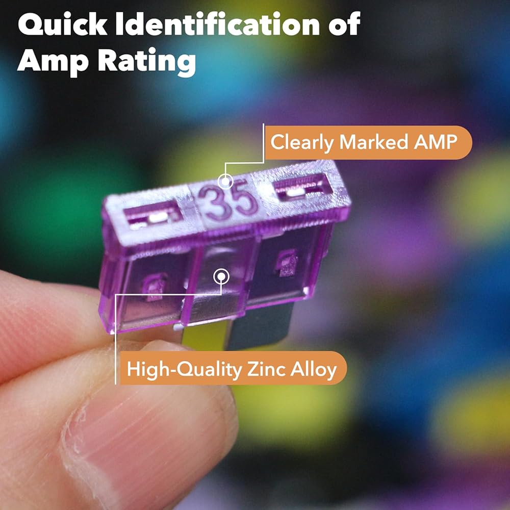 EASY IDENTIFICATION FOR QUICK REPLACEMENT – Each auto fuse features a color-coded design with clearly marked amperage ratings on the top and fuse cover, making it easy to select the right one for your vehicle.