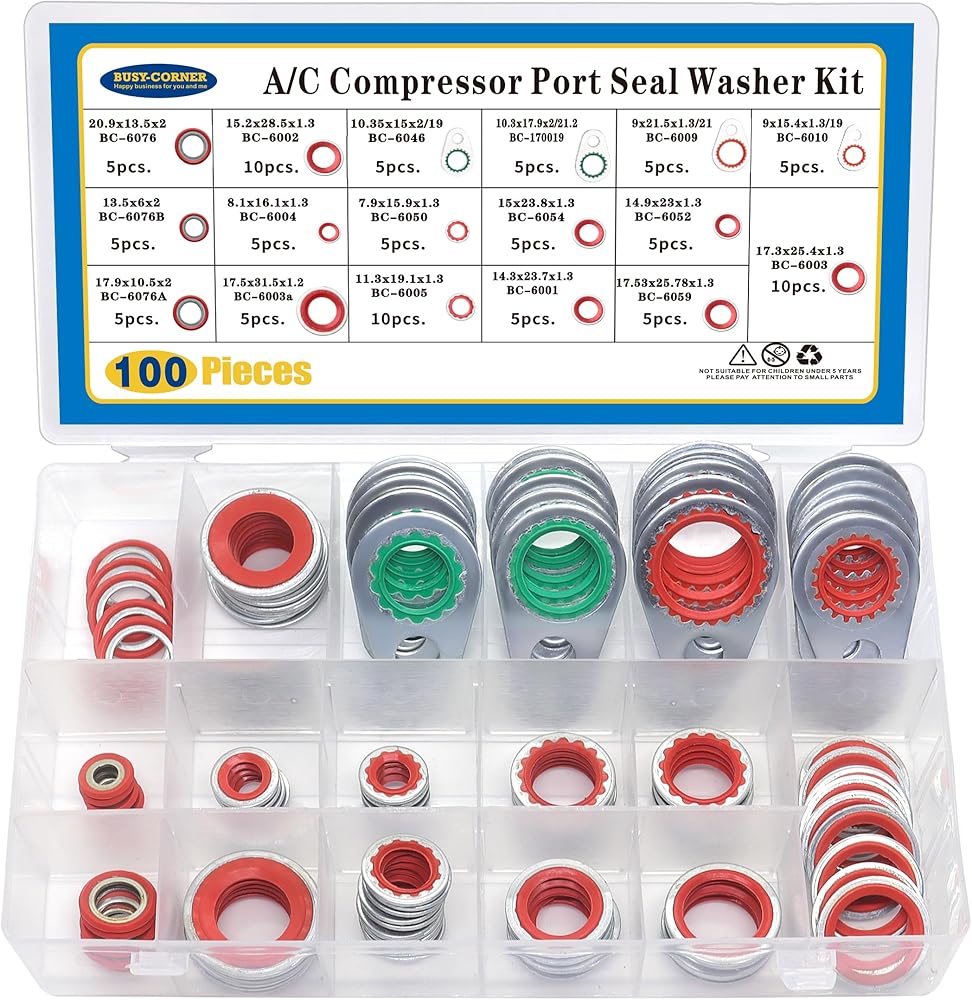 Replacement Kit: Air conditioning seal gasket is prefect replacement part for your vehicle's component. Different size with different thickness sealing washers, which can provide low & high pressure sealing and with stand high & low temperature. Ac air compressor kit bolt torque is reduced with no loss of tightening load. Air conditioning seal gasket is prefect replacement part for your vehicle's component