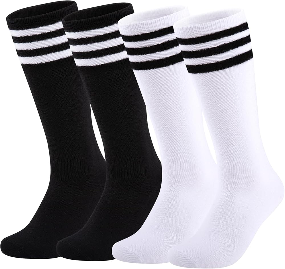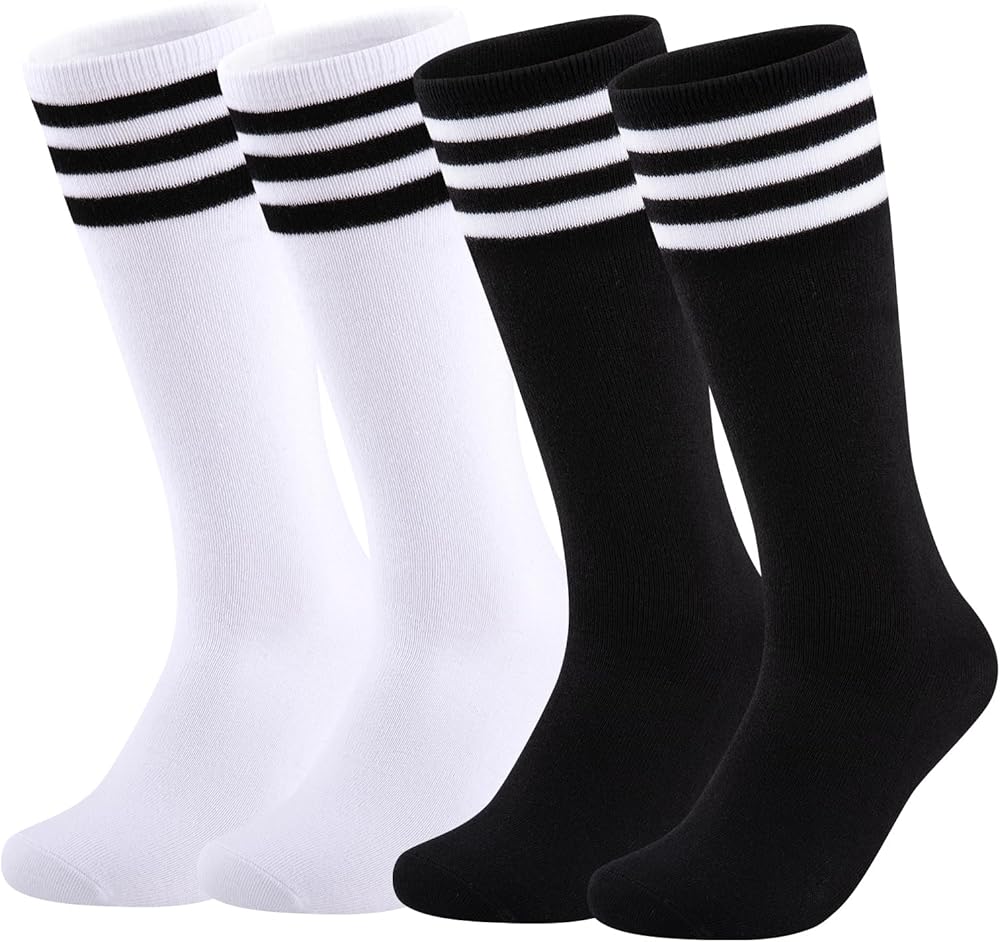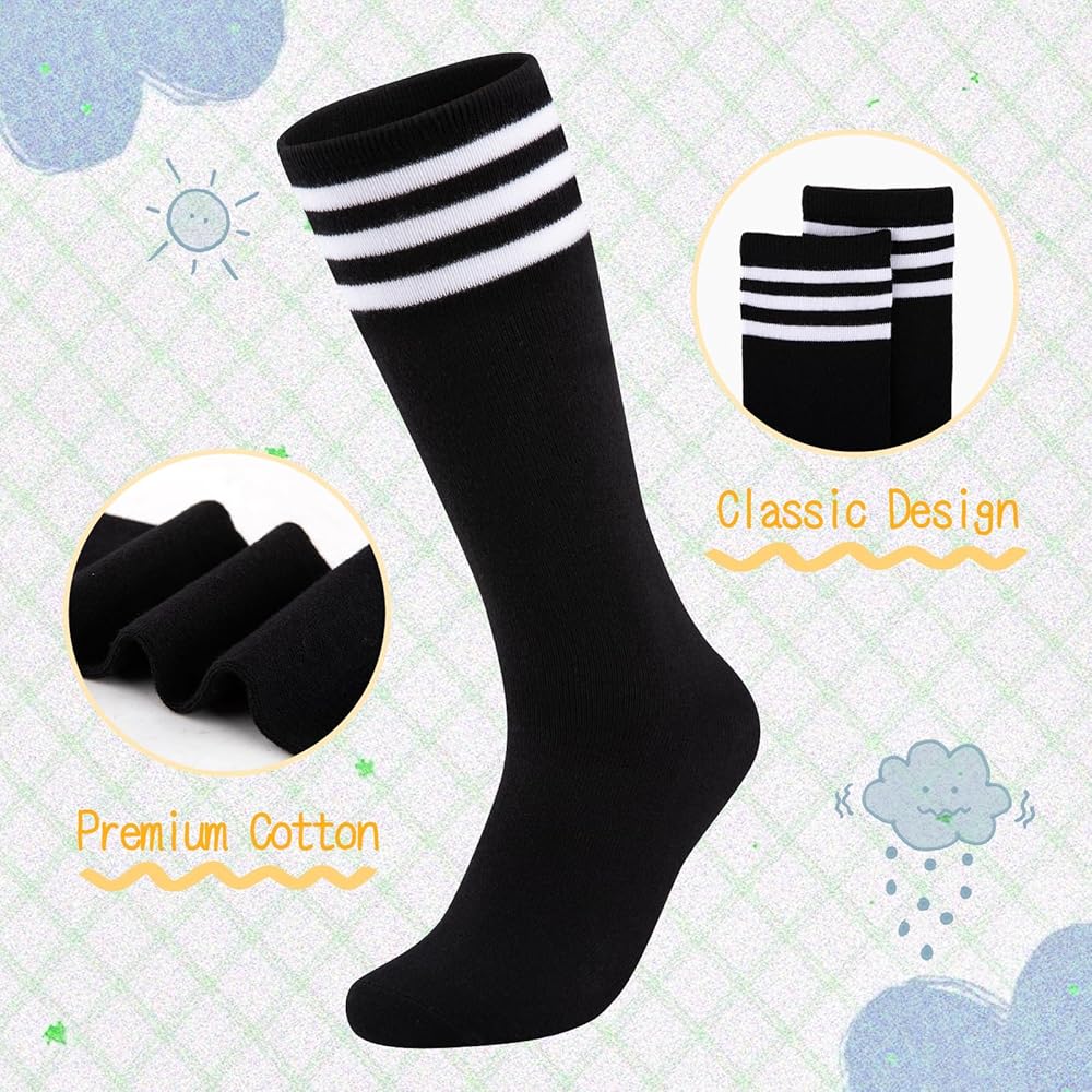 GREAT ELASTICITY: Designed with wonderful elasticity, the girls sports socks can be stretched to provide kids with a comfortable feeling. The elastic design makes it easy to put on and off for chidren. Besides, the appropriate thickness of the girls soccer socks does not make children feel cold even in cold weather