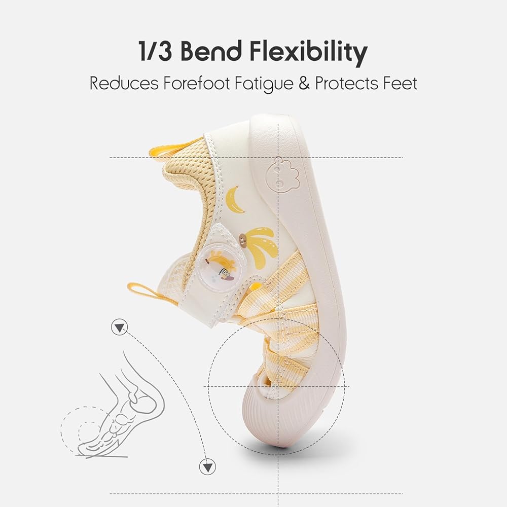 Bend Point Design: These toddler walking shoes feature a scientifically positioned 1/3 bend point for natural foot movement, reducing fatigue while maintaining all-day comfort. Perfect for school, playground adventures, running, and everyday exploration!