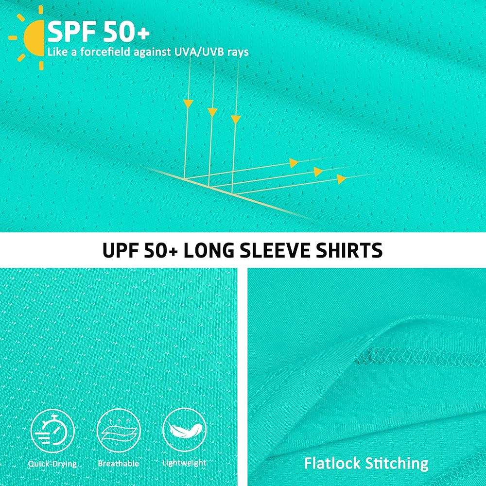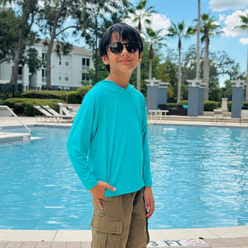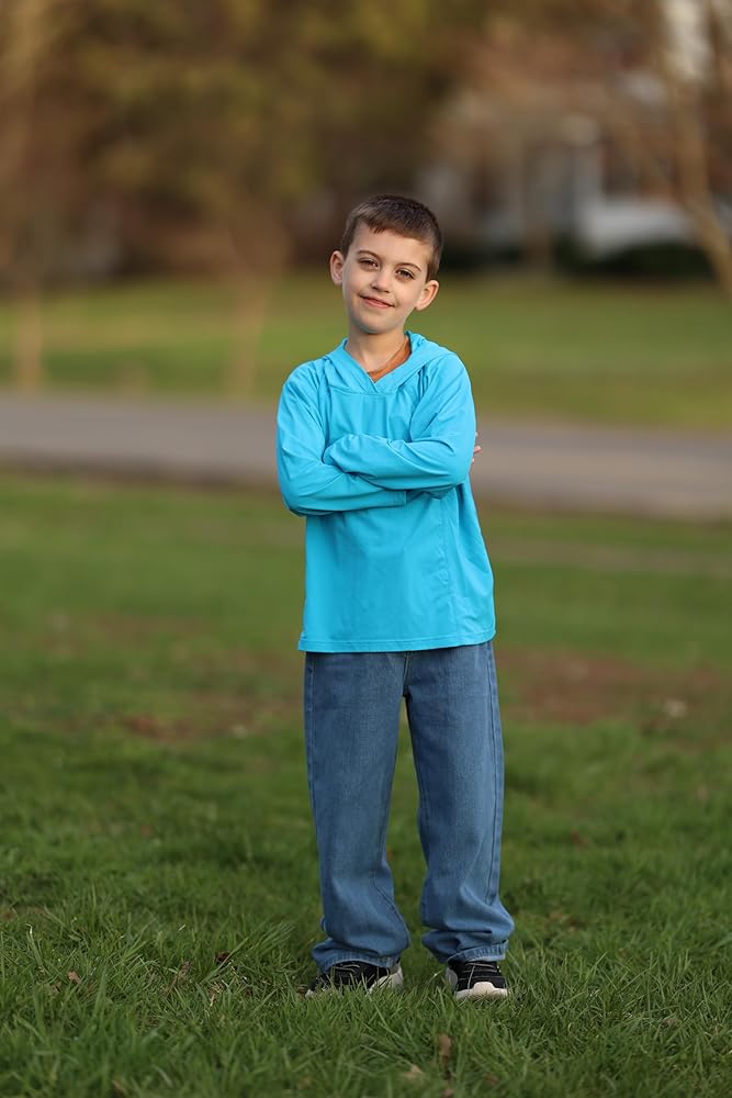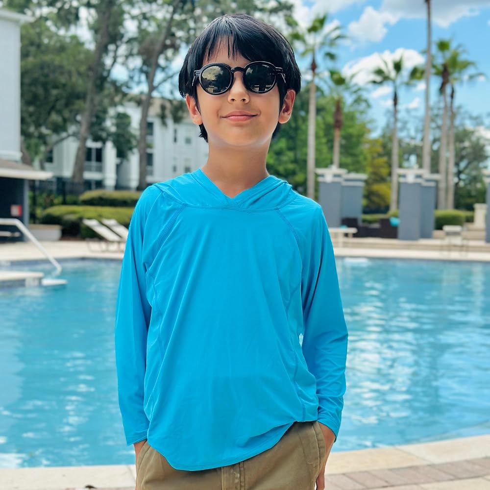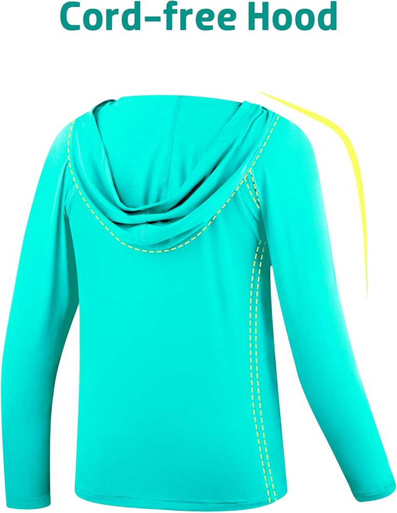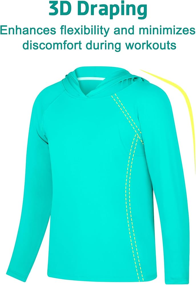 COMFORT MEETS BREATHABILITY: Crafted with 80% nylon and 20% spandex mesh fabric, our boys long sleeve hoodies are lightweight, moisture-wicking, and ultra-breathable. These youth shirts feature UPF50+ protection, shielding kids from harmful UV rays. The soft texture and airy design ensure unbeatable comfort for any activity.