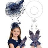 Girls Tea Party Hat Fascinator Hat:This girls tea party hat is a must - have for all elegant gatherings. Tea Party Accessories Set includes a stylish black horse - racing - style fascinator hat with mesh and feathers, a pair of delicate short - style lace gloves, a pair of faux pearl drop earrings, a faux pearl bracelet, and a faux pearl necklace. This practical and exquisite combination is suitable for most women, meeting both daily and party - wear needs.
