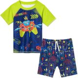 Fun Gaming Design: This swimwear set features a vibrant "GAME ON" graphic and playful video game controller patterns, making it the perfect choice for young gamers who love to stand out in style.