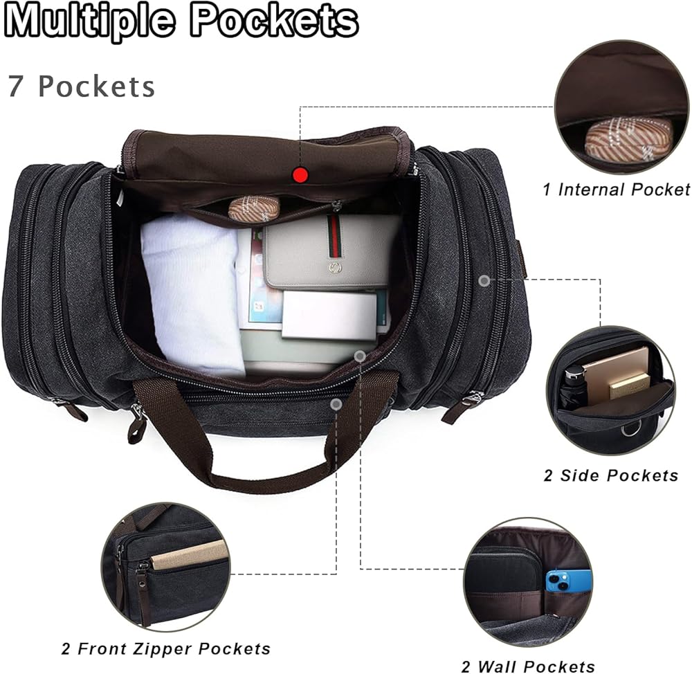 【Quality Material】The travel duffel bags are made of canvas material, abrasion and tear resistant, flexible zipper for quick opening and closing, padded base design keeps the contents of the canvas duffle bag protected from rough terrain and hard knocks