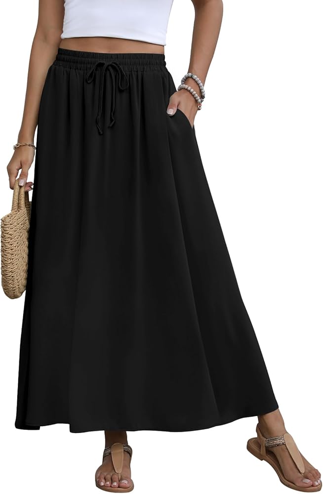 【Elegant Design】: The elastic waistband with a drawstring and A-line skirt design flatters all body types, while two pockets provide space for small items.