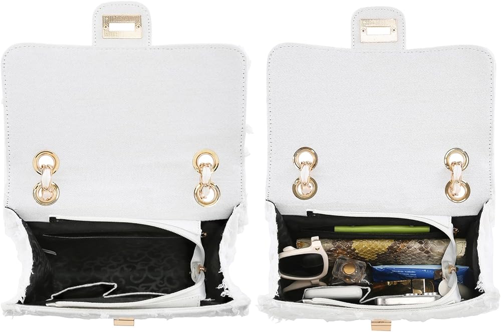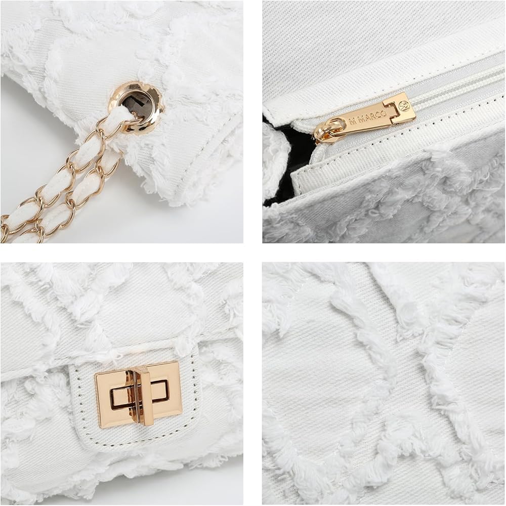 Upgrade your style with our versatile denim crossbody flap bag featuring a chic chain strap that adds a touch of elegance to any outfit. Whether you prefer to sling it over your shoulder or carry it in your hand, this bag offers multiple wearing options to suit your needs. All of our products are from M Marco's MKP collection and are not associated with any other brand.