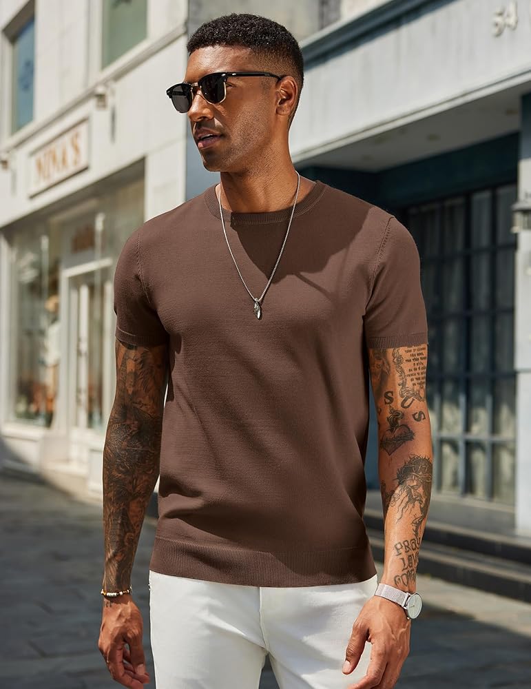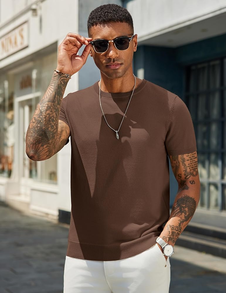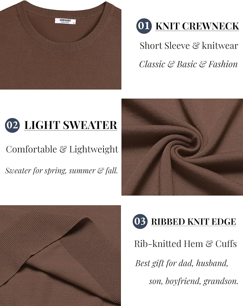 EASY TO MATCH: COOFANDY mens knit shirt short sleeve crewnecks can pair with shorts or jeans for a casual look, with suit pants or under a jacket/blazer for a business look. The knit crewneck sweatshirt is suit for spring, summer and fall wear.