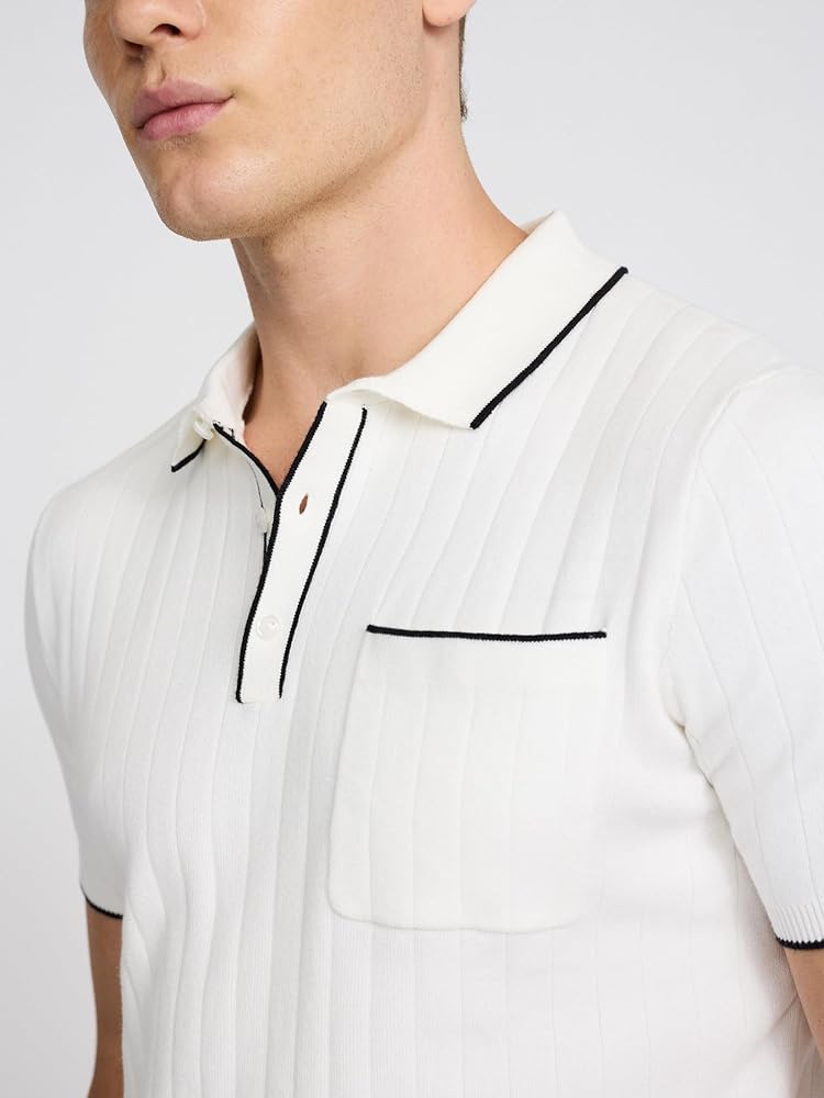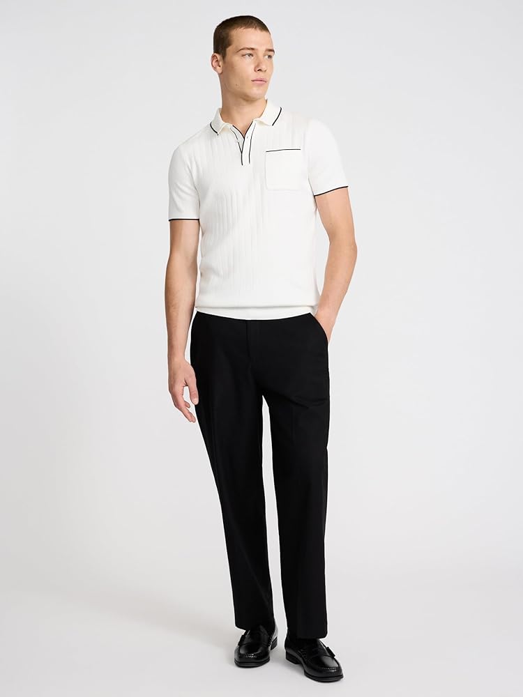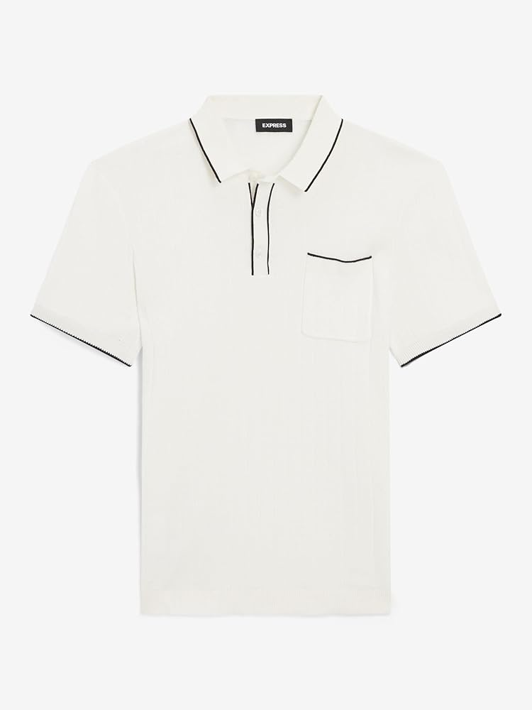 The everyday polo made new with a ribbed cotton sweater material and tipping at the collar, sleeve, and pocket for added flair.