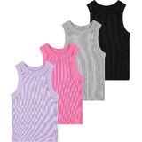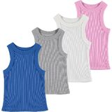 Versatile 4-Pack Girls' Ribbed Tank Tops – A Wardrobe Staple This 4-pack of girls' sleeveless ribbed tank tops offers essential comfort and style for every occasion. Perfect for casual wear, layering under jackets, or pairing with shorts, jeans, or leggings, these tanks are a must-have basic for every growing girl. Ideal for school, summer activities, or indoor lounging.