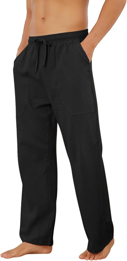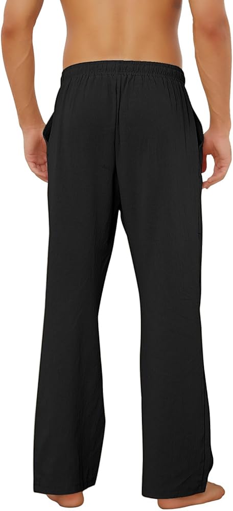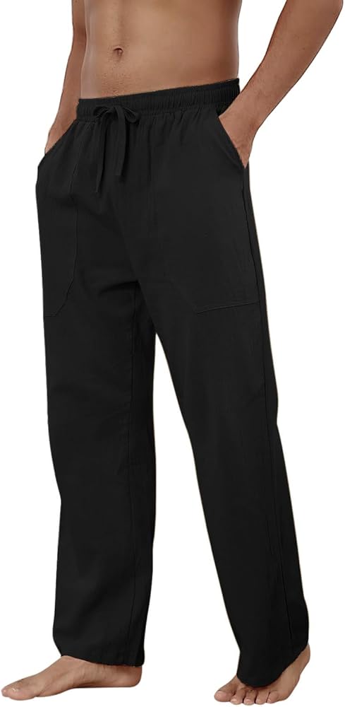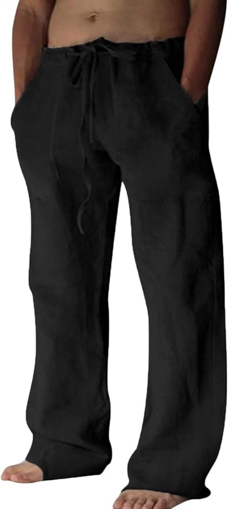【Loose Fit】The loose fit mens cotton linens pants features a straight leg design to visually improve your legs type. Two large side pockets are deep enough for phone, keys or card,keep from falling out when jogging or running.