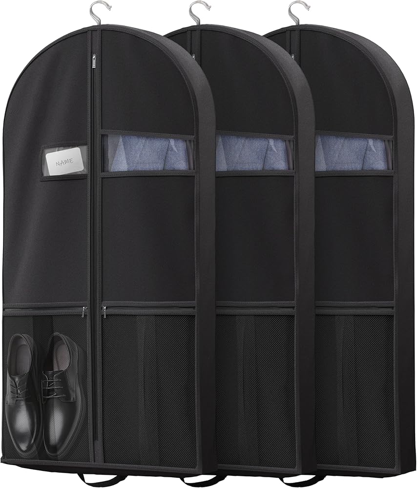 Clear Window and Pocket: The clear PVC window allows for easy identification of items inside. The garment bag features 2 extra-large pockets for accessories or shoes. The PVC ID pocket enables labeling.