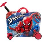 Fast Forward Spiderman Ride on Luggage for Kids, 18'' Suitcase with Seat for Kids, Cute Lightweight Travel Trolley
