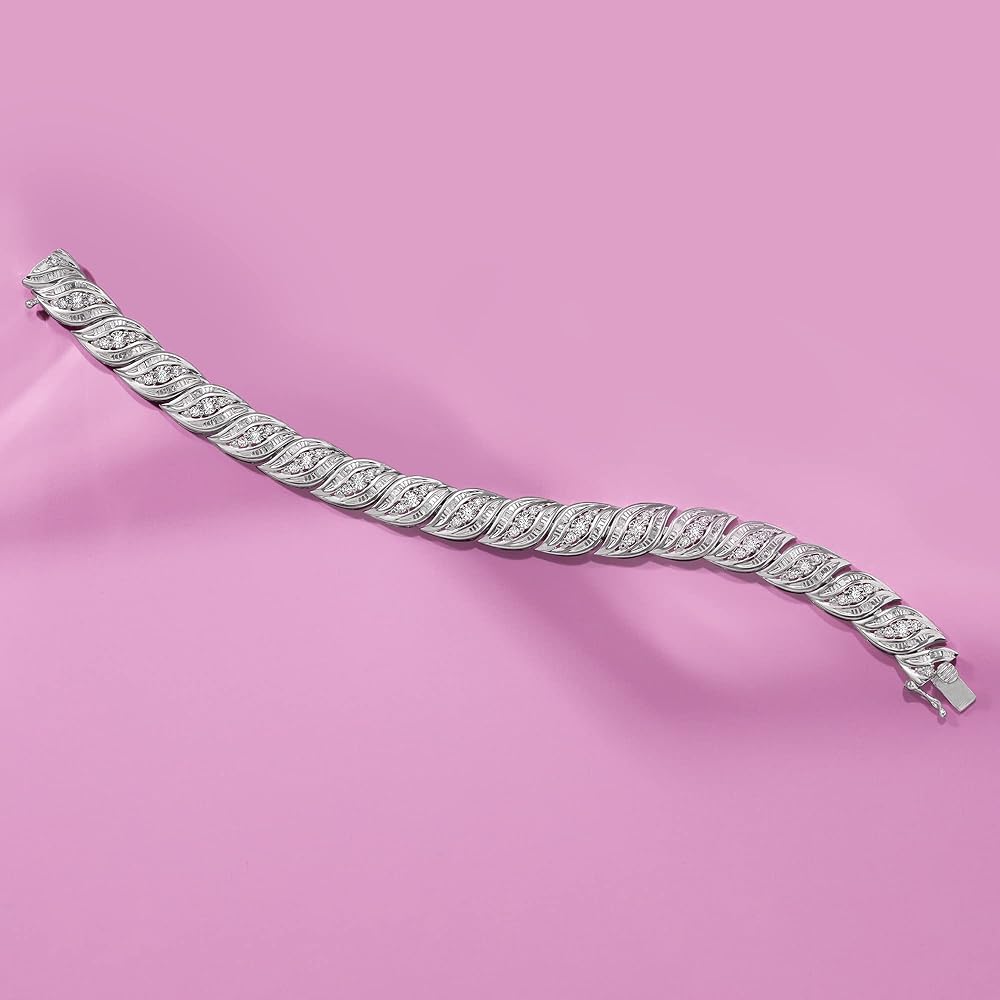 A top-rated jeweler since 1952, Ross-Simons travels the world to find high-quality styles at the best prices. Alight with 1.00 ct. t.w. round and baguette diamonds, this bracelet is the epitome of affordable elegance. Set in polished sterling silver. 3/8" wide. Figure 8 safety. Box clasp, diamond bracelet.