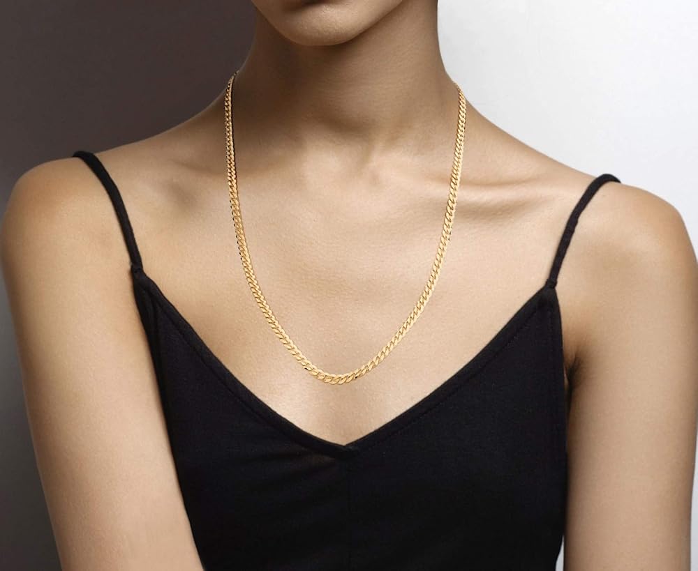 Modern Classic: Add style to a basic look with this solid 18K gold over sterling silver 5mm Curb chain. Our flat diamond-cut beveled links are much more reflective than the standard curb chain for a rich, perfect shine. It is strong and durable for daily wear yet not too thick for a comfortable fit. Wear alone with casual or formal attire for everyday modern elegance, with a favorite pendant for a personal statement or as a great layering chain. Visit our store for a full selection of chains.