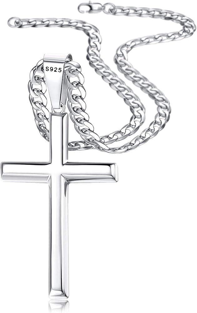 Quality Material: 925 Sterling silver beveled edge cross pendant with stainless steel diamond cut durable cuban link chain. Great and popular jewelry material, strong and durable. Hpoallergenic, suitable for sensitive skin and will never tarnish