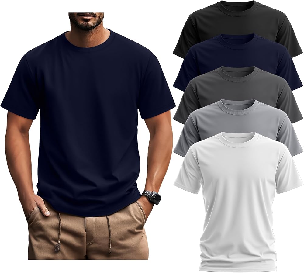 Package Include: you will receive 5 pack men's big and tall shirts in different color, these tops are solid color and crew neck design, multi pack provides you with a variety of choices to meet your summer daily needs