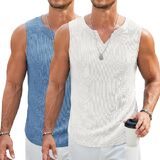 CASUAL & FASHION -- Mens stylish sleeveless t shirts have excellent drape and slightly stretchy, unique knitted texture wrinkle free, quick drying, have good breathability, keep you cool and relaxed in beach. Mens casual knitted tank tops is a great choice for your leisure.