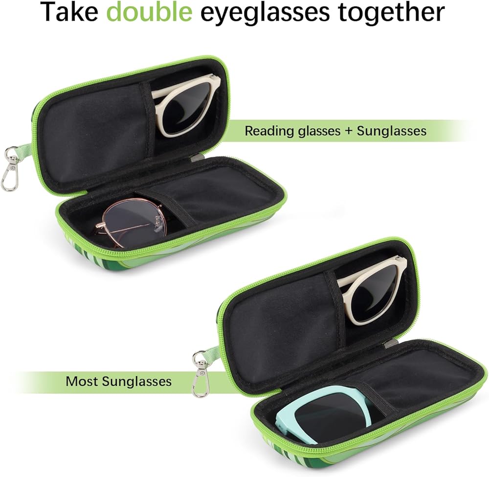 PROTECTIVE DESIGN: With Rubber band designed to keep glasses stably inside. Soft-lined pockets protect glasses individually from scratches.Hard shell eyeglass case with zipper closure provides maximum protection for your glasses or sunglasses. And the soft lining also keeps your eyeglasses from scratching. Soft fabric lining interior prevents scratches while elastic strap securely holds eyewear in place. Full protection for your double glasses