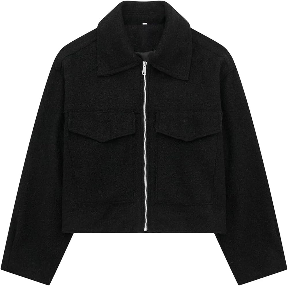 Features: Cropped shacket jackets with pockets for women feature long sleeve, short length, full zip up, stand collar and classic 2 large chest pockets. The loose fit ladies cardigan sweaters jacket comes in various fashionable colors that not easy to go out of style