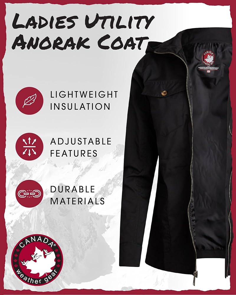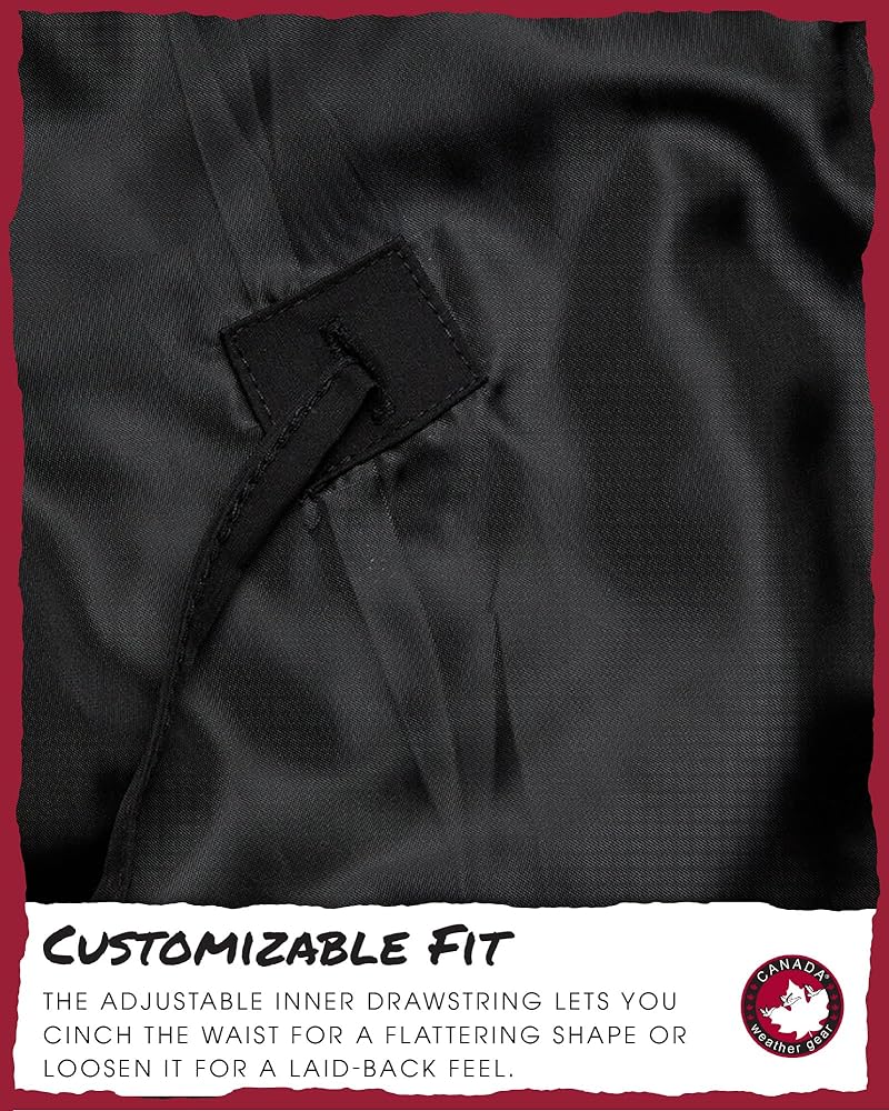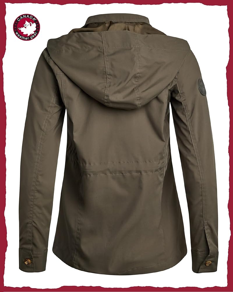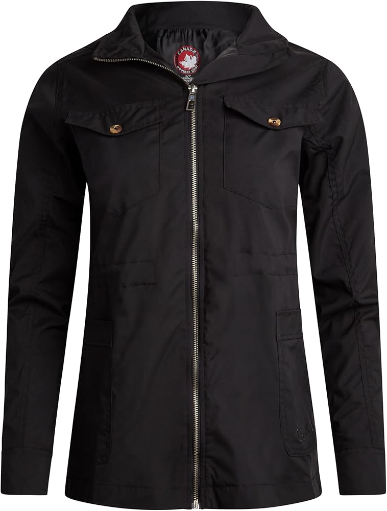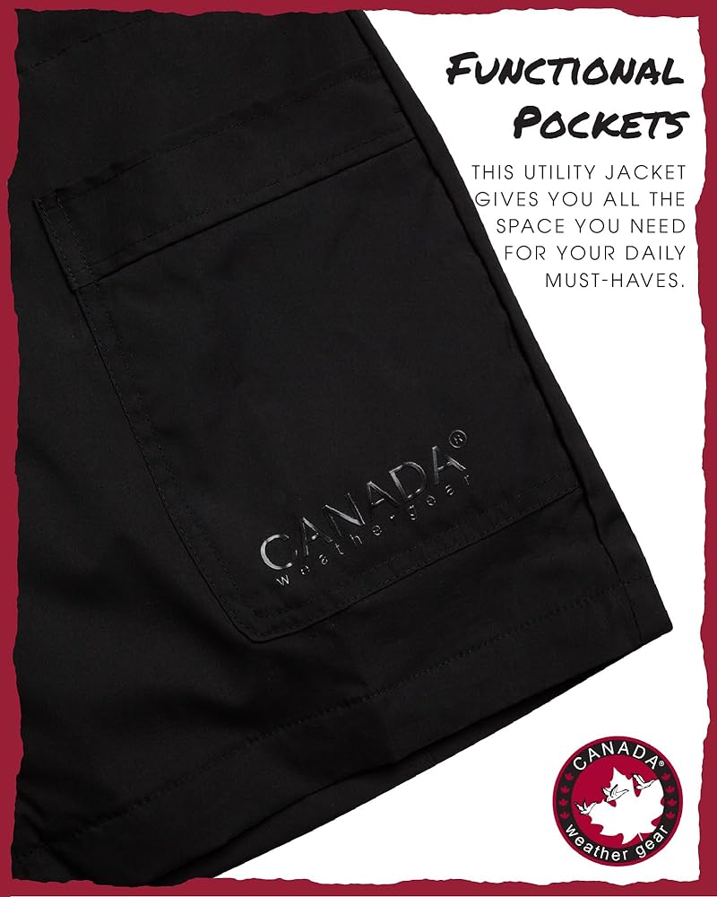 The CANADA WEATHER GEAR womens utility jacket is designed to provide comfort and flexibility throughout changing weather conditions. As a womens spring jacket, it offers a practical solution for mild temperatures, making it an essential piece for transitional seasons. The lightweight jacket women construction allows for layering without feeling heavy, making it ideal for the spring and fall months. Equipped with a full zip closure and an adjustable hoodie, this jacket offers coverage and protection from the elements. The light jackets for women design provides breathable warmth, while the adjustable features allow you to customize your fit. This jacket works well as part of a womens lightweight jackets collection, offering a functional option for everyday wear. The inner drawstring provides waist adjustment, allowing you to change the silhouette depending on your preference. Whether worn loose or more fitted, the utility jacket women can be paired with jeans, joggers, or dresses. It is well-suited for womens jackets casual looks, offering versatility for different occasions. Available in a variety of colors, this jacket can be easily integrated into your existing wardrobe. It's a practical piece for layering during cooler days or wearing alone on mild days, making it a go-to in womens jackets spring collections. The jacket's design is inspired by safari clothes for women, bringing in functional details that enhance its casual style. This women spring jacket is designed for those who need a functional piece that adapts to their day-to-day needs. Whether it's for outdoor activities or a casual day out, the jacket serves as a reliable outer layer that complements different looks, making it a practical addition to any wardrobe.