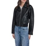 This faux leather sleek bomber is the perfect transitional jacket for any season. Featuring a laydown collar, center front zipper closure and a soft rib knit hem for ease and comfort. Two hand pockets with hidden zippers for ample storage. Adjustable zippers at each cuff allow flexibility and style. The classic Levi's Red Tab sewn in the lower left side seam.
