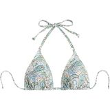 - Features: triangle bikini top, halter neck, tie back, smocked, floral print, removable padding
