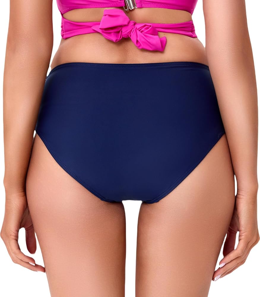 Fashionable Pleated Detailing: This women's low-waisted swim bottoms for women feature a classic retro style, with carefully designed pleats on both sides. womens swim bottoms combine modern fashion with timeless elegance. The pleats also cleverly hide the curves of the abdomen and hips, creating a smoother silhouette