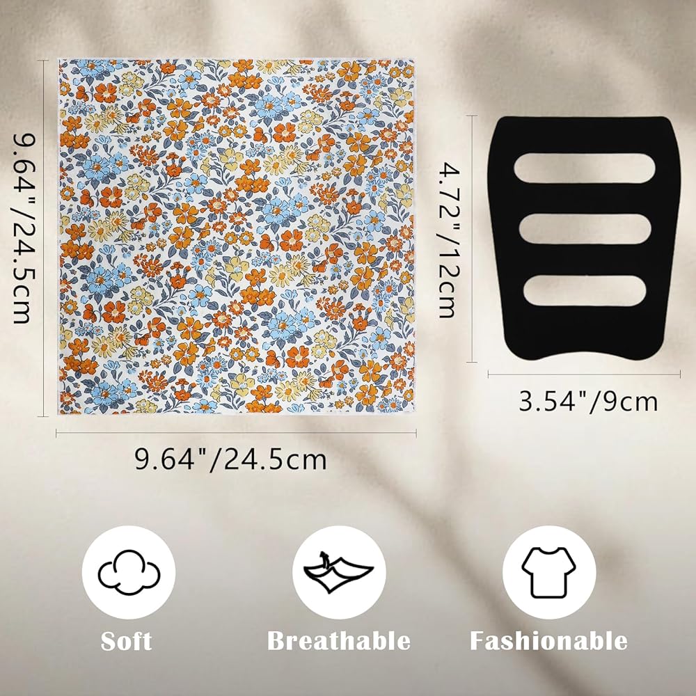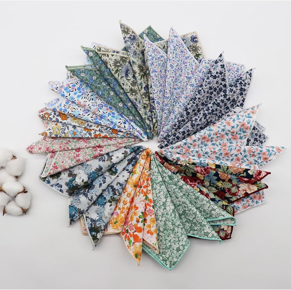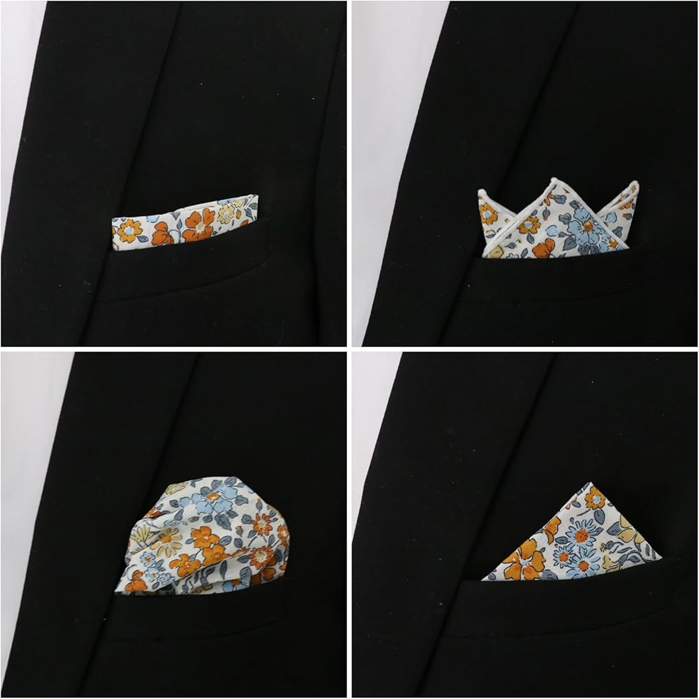 Practical Cotton Floral Handkerchiefs: Our mens pocket squares are made of soft cotton with stitched edges; They're highly absorbent, gentle to the touch, and ideal for wiping sweat; This pocket square for men is both stylish and practical