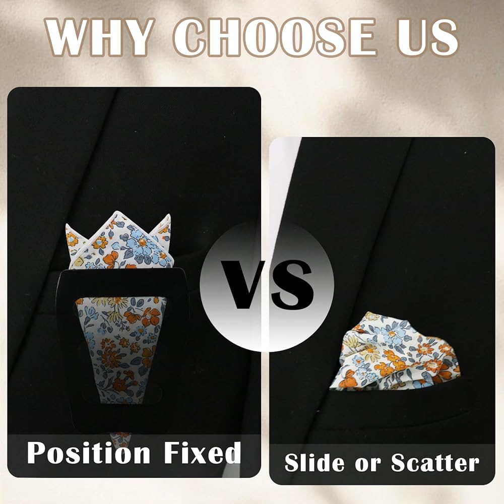 Mens Handkerchiefs with 1 Pocket Square Holder: This handkerchief comes with a pocket square holder for men, keeping your pocket squares firmly in place; No need for frequent adjustments