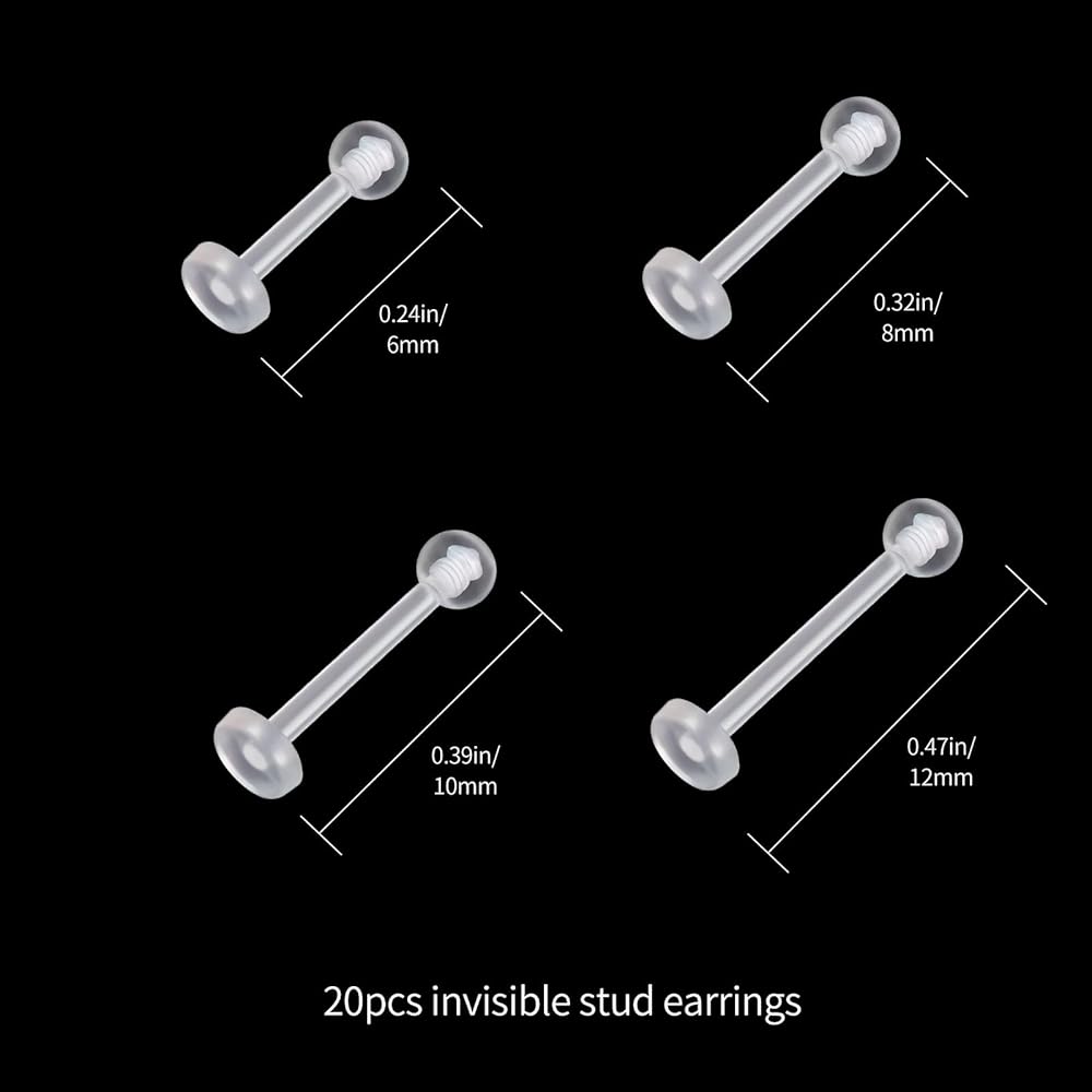 Packing List: We will provide you with 20 pack clear nose studs of different lengths, which is enough to meet your long-term use needs. It can not only avoid the embarrassing situation of no clear earrings available, but also facilitate sharing with family or friends.