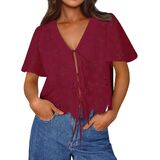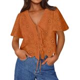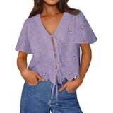 Features: Tie front cadigans, eyelet embroidery clothes, summer tops, womens short sleeve tops, blouse for women dressy casual, crop tops