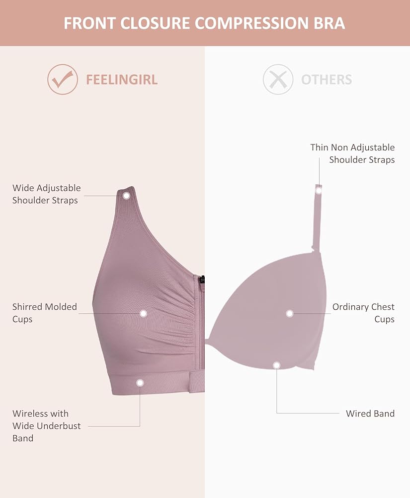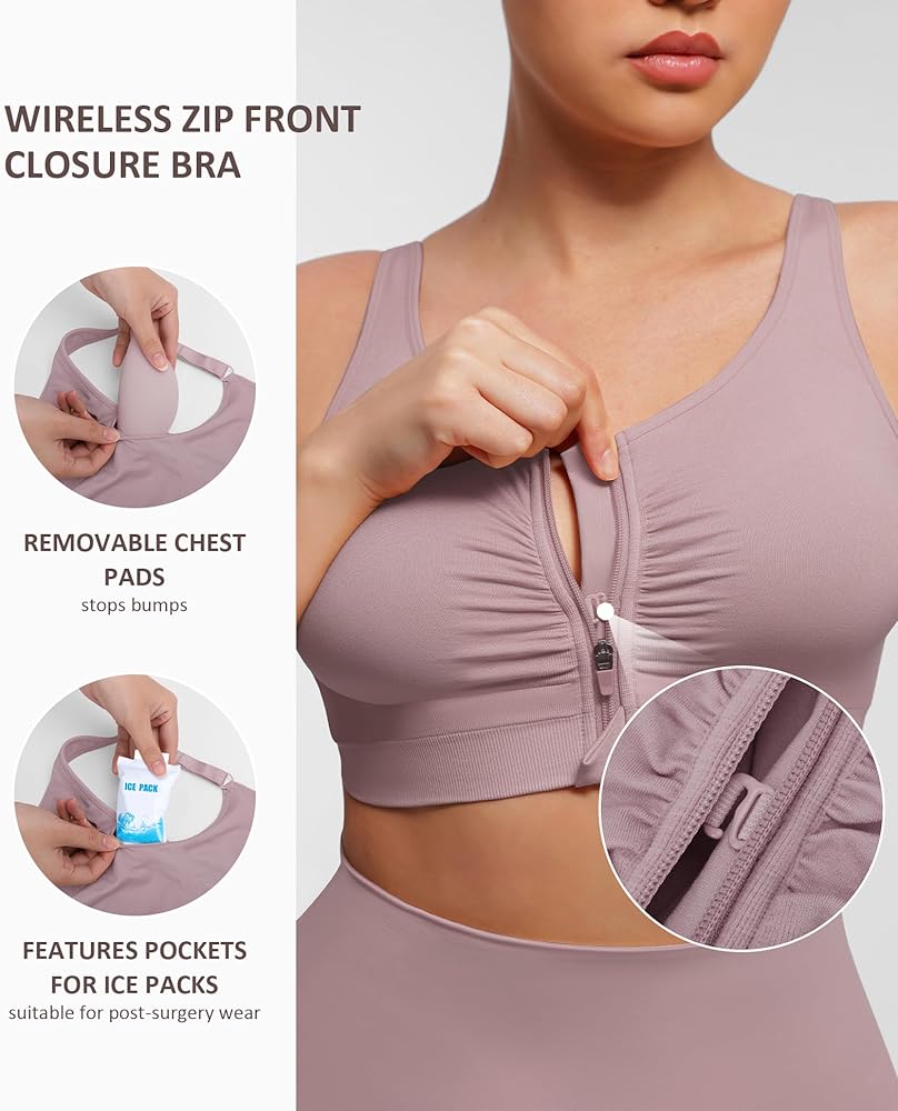 SUITABLE FOR DAILY WEAR AND POST-SURGERY RECOVERY: Crafted from a soft, skin-friendly fabric, this bra minimizes irritation to your skin and incisions. Featuring a double-layer design with removable pads, it allows you to insert ice packs for optimal post-surgical care, ensuring comfort and functionality. But it is recommended to wear it 2-6 weeks after surgery. All patients must consistenly follow the surgeon's instructions.