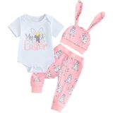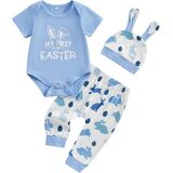 Package: First Easter Outfit-1xBaby Girl Boy Romper Jumpsuit Tops+1xPants+1xHat/Headband. Perfect 1st Easter gift for your baby boys girls.