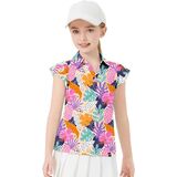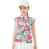 【Golf Tanks Tops for Girls UPF 50+ UV Protection】Ruffle Sleeve golf tops/print shirts for girls with sun protection prevents damaging UV rays from penetrating the fabric of the women's tennis tops to help protect covered skin on sunny days.