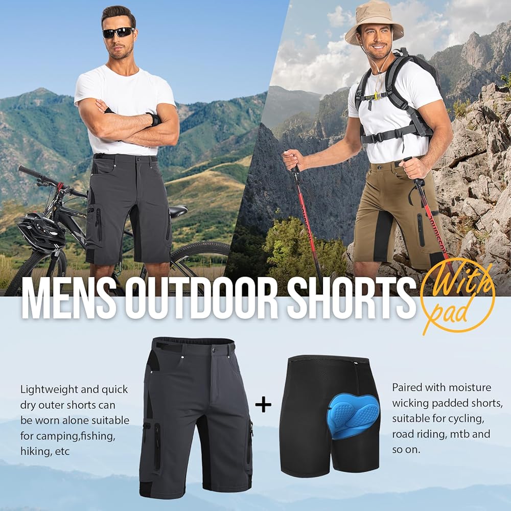 6. Versatile and usable ---- Our mountain biking shorts for men are suitable for cycling, running, hiking, climbing, traveling, camping, mountaineering, fishing and other outdoor activities.