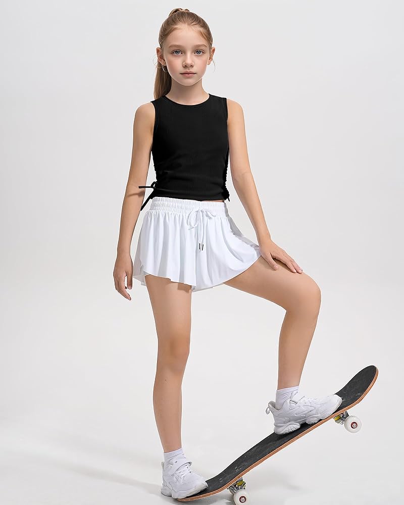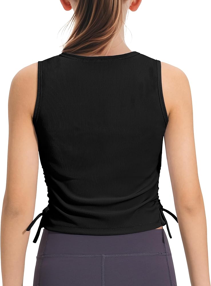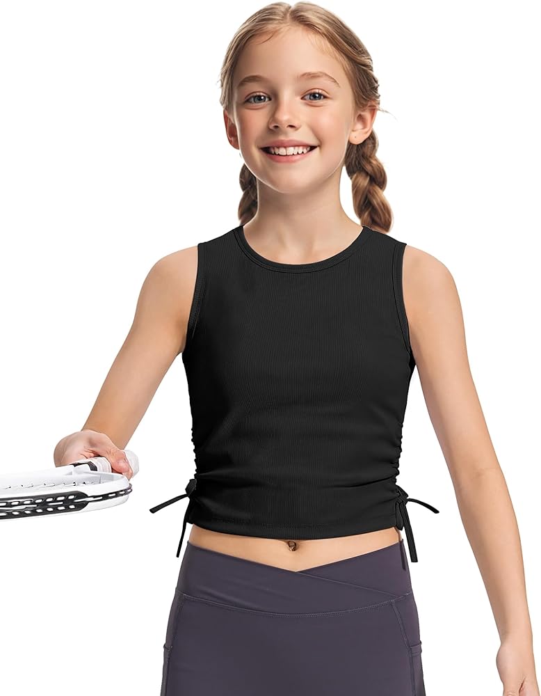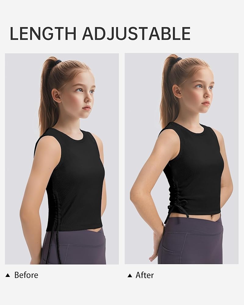 【Drawstring design】HASMES Girls Crop Tops with a drawstring design on the side, the length can be adjusted according to kids needs—these tank tops for girls keep your child stylish and comfortable.