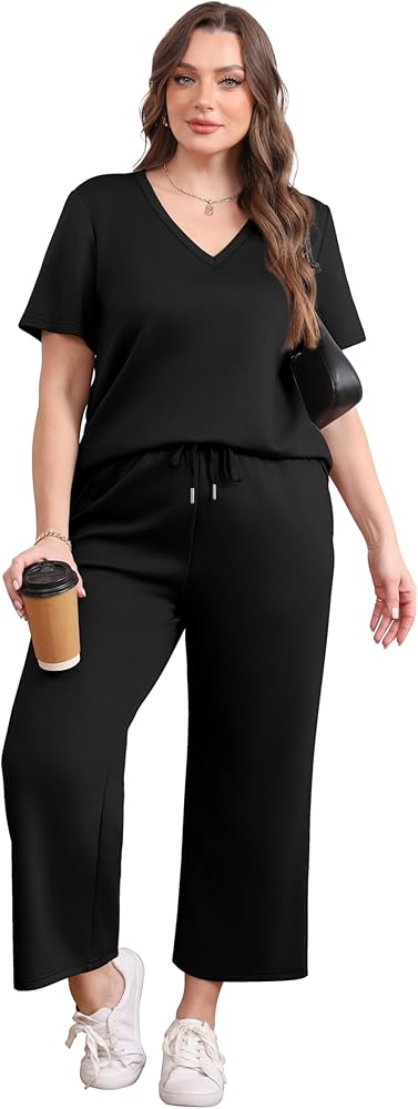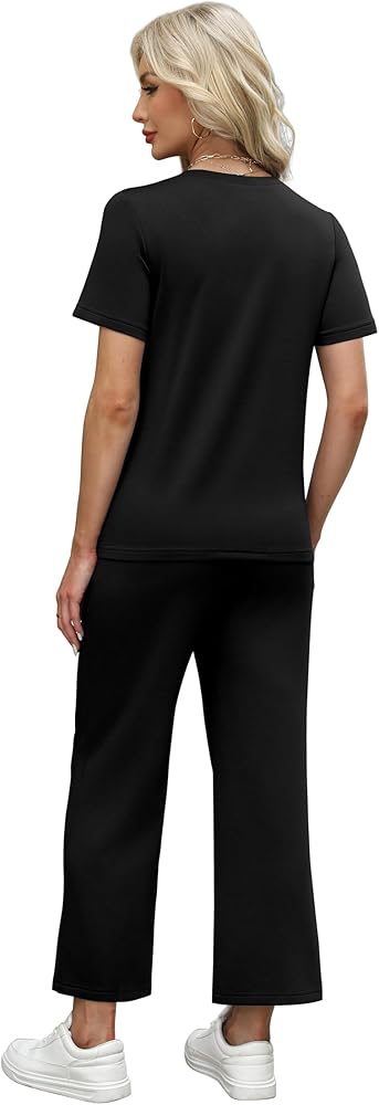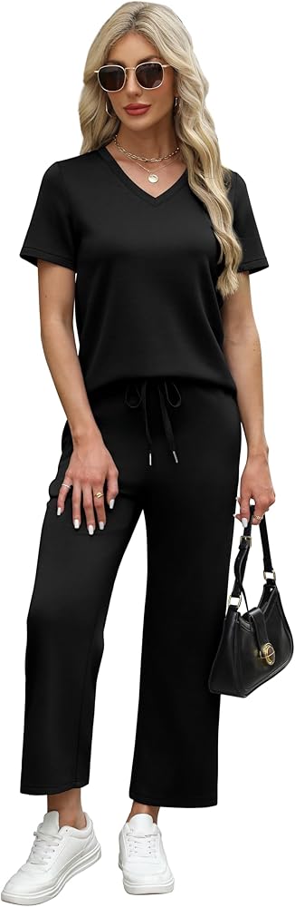 Feature: This chic set includes a cozy V-neck pullover with short sleeves and elastic-waisted pants featuring two practical pockets. The solid color loose-fitting design create a laid-back silhouette, ensuring it's an essential staple for your wardrobe.