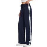 [Straight Leg Design]: Side Stripe running pants for women feature a loose cut straight leg.Flanked by contrast side stripes, these knit track pants feature timeless features like front mid seam pleats but with a lounge-worthy and sporty vibe feel