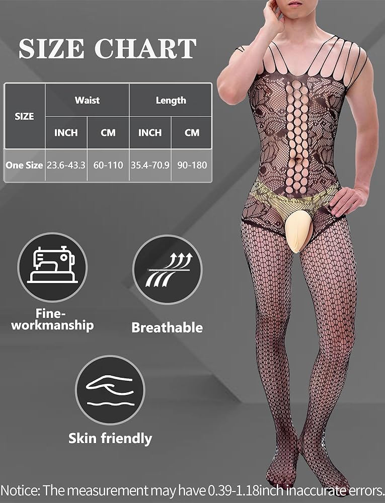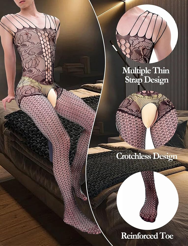 Men Lace Lingerie Sissy for Men Black Fishnet Lingerie Bodysuit Elastic One Piece Nightgown