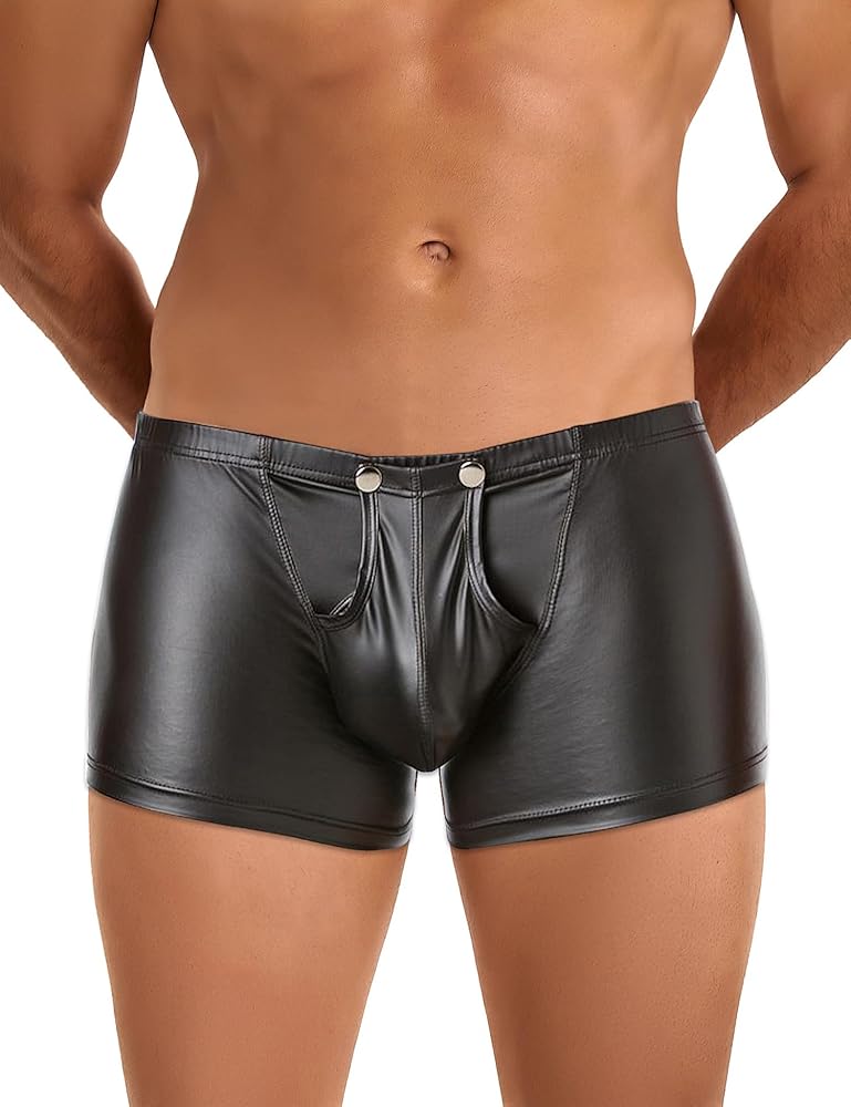 Discover the ultimate in men's fashion with our collection of men's lingerie designed to captivate and inspire. Our mens leather underwear combines sleek PU leather with a modern, open front design, making it both stylish and practical for everyday wear or special occasions. The briefs feature a unique U-shape pouch for enhanced comfort and support, ensuring a perfect fit and a confident look. For those seeking a touch of sensuality, our lingerie is crafted to elevate your outfits with its bold and provocative design. The mens open front underwear is perfect for men who appreciate convenience without sacrificing style. Whether you're looking for lingerie for men, gay underwear, or men's exotic apparel, our range caters to all preferences. Our thong styles offer a sleek and minimalistic option, while the boxers provide a more relaxed and comfortable fit. Each piece is designed to enhance your appearance and boost your confidence. From men's exotic boxer shorts underwear to leather shorts for men, our versatile collection includes costume underwear for men and male lingerie for men that can transform any look into something truly unforgettable. Embrace your style with our mens lingerie for straight men and explore a world of comfort, confidence, and allure.
