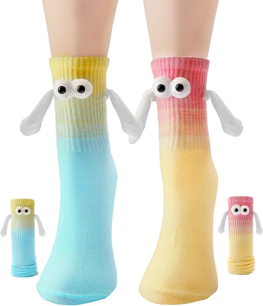 These charming and cozy mid-calf holding hands socks boast a delightful design incorporating small magnets that naturally draw them together, allowing couples to hold hands while wearing them. Each set contains four pairs of vibrantly colored novelty socks, ideal for both men and women, making everyday moments with your partner even more delightful and comforting. These magnetic socks that hold handssocks are not just practical accessories but also heartfelt expressions of love.